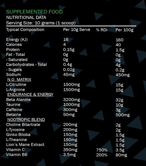 • 4250mg of Beta Alanine, Taurine and Betaine