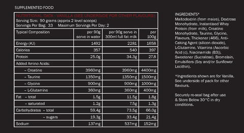 - 3.96 grams muscle building Creatine in every serve, boosted with Glutamine, Taurine & Glycine