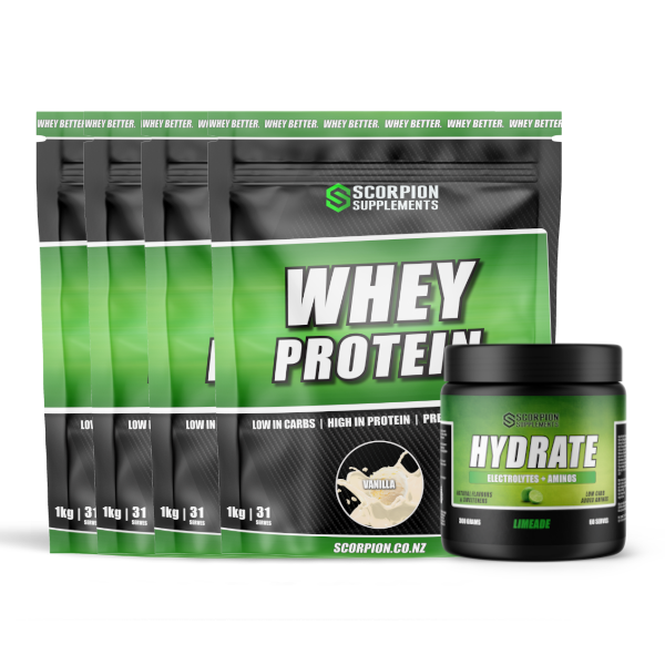 Scorpion Whey Protein Concentrate (WPC) is a premium quality protein supplement, which is designed for athletes, gym goers and people looking to improve their health and vitality. Derived from NZ grass fed cows, Scorpion Whey features a high protein percentage (80% vanilla) which will deliver a full profile of desirable amino acids that will benefit your body. Blended into OUT OF THIS WORLD flavours (including 100% naturally sweetened options), Scorpion Whey tastes amazing and mixes instantly. Scorpion Whey is the ultimate protein source.